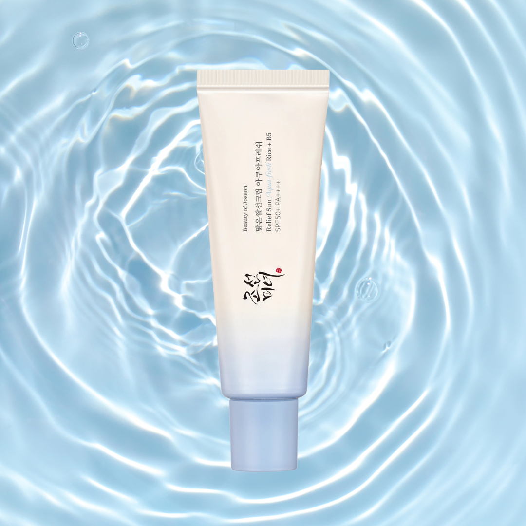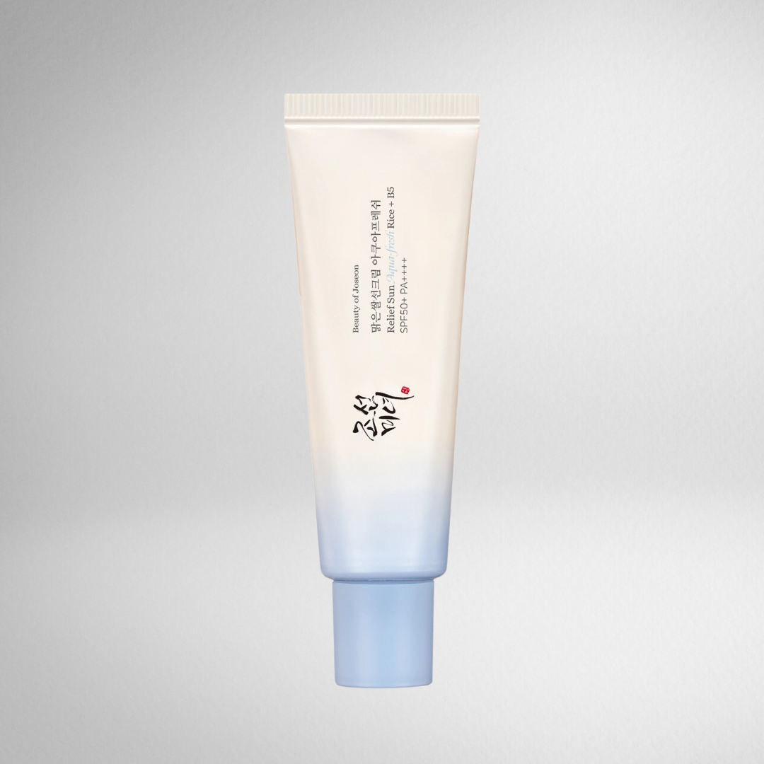 The Beauty of Joseon Relief Sun Aqua (Rice + B5) SPF50+/PA++++ is a hydrating sunscreen formulated with rice extract and panthenol (Vitamin B5) to soothe and nourish the skin.