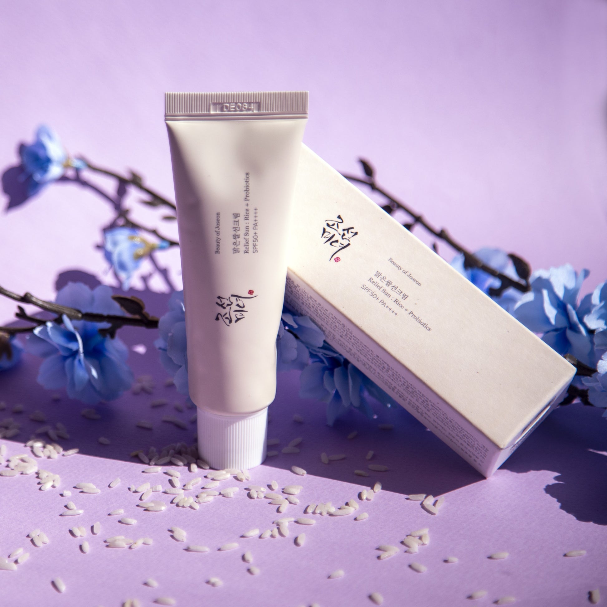 The Beauty of Joseon Relief Sun Cream with Rice and Probiotics SPF 50+ is a lightweight, moisturizing sunscreen that offers high protection from harmful UV rays while nourishing the skin.