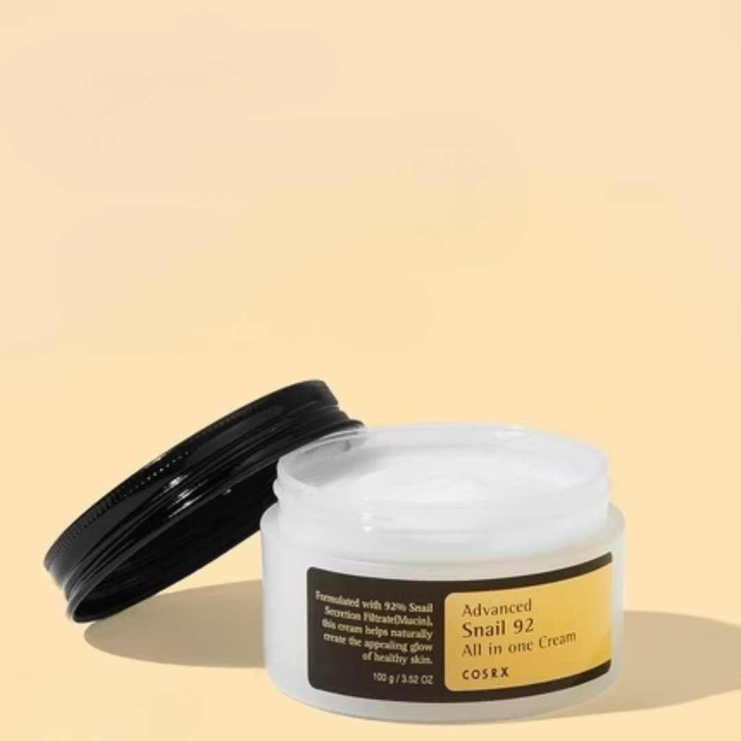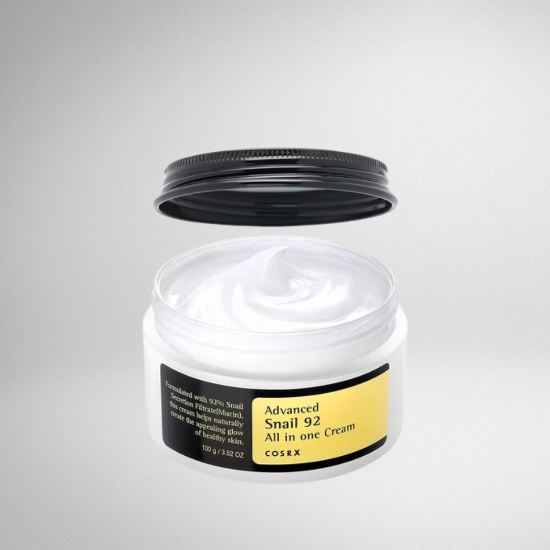 The COSRX Advanced Snail 92 All in One Cream is a nourishing moisturizer formulated with 92% snail secretion filtrate, known for its hydrating and reparative properties.