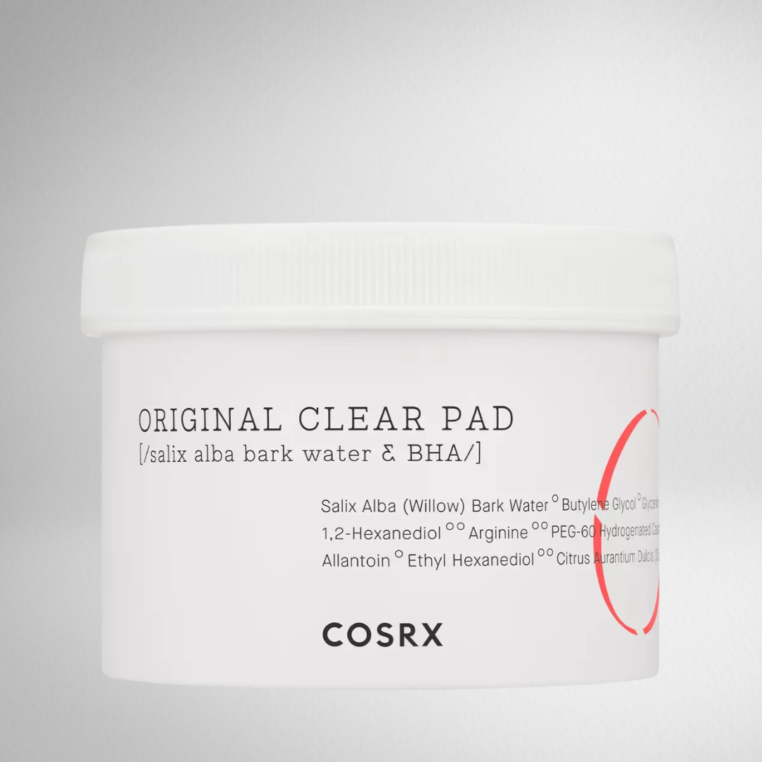 The COSRX One Step Original Clear Pad is an exfoliating and cleansing solution in pad form.